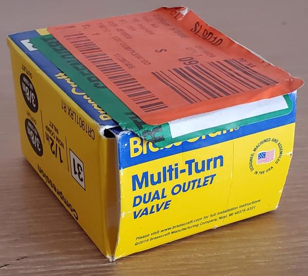 BrassCraft 1/2 in. Nominal Compression Inlet x 3/8 in. O.D. Compression x 3/8 in. O.D. Compression Dual Outlet Multi-Turn Valve controls water flow to household plumbing fixtures. The dual outlet allows two independent supply lines to be attached to a single valve. Ideal for adding dishwashers, ice makers, water filters and instant hot water dispensers to existing water supply. With a few turns of the valve handle, you can stop or start the flow of water leading to the plumbing fixture, allowing for maintenance and repair without shutting off the water to the entire home. Color: Rough Brass.