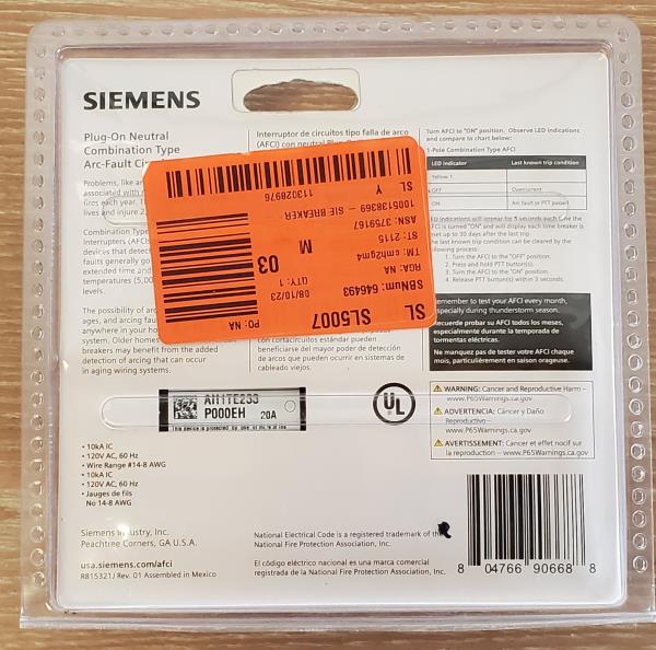 Siemens introduces the new simple, spacious and secure Plug-on neutral load centers with electronic breakers. The Siemens Plug-On Neutral Combination Type AFCI breaker detects arcing faults (an unintentional arcing condition in a circuit) that standard circuit breaker are unable to detect. This AFCI circuit breaker is the same, reliable design, without the pigtail, specifically design for the Plug-On Neutral Load Centers. These breakers now only have a single load lug. The branch neutral conductor is returned to the neutral terminal bar for simpler and quicker wiring.
