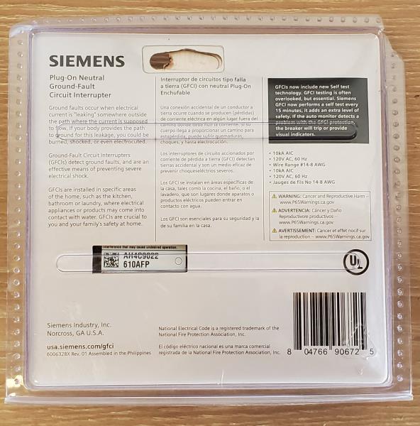 Siemens introduces the new simple, spacious and secure Plug-on neutral load centers with electronic breakers. The Ground fault (GFCI) circuit breakers are an effective means of preventing severe electrical shock. GFCIs are installed to protect areas of the home, such as the kitchen, bathroom or laundry, where electrical appliances or products may come into contact with water. This Ground Fault circuit breaker is the same, reliable design, without the pigtail, specifically designed for the Plug-On Neutral Load Centers.