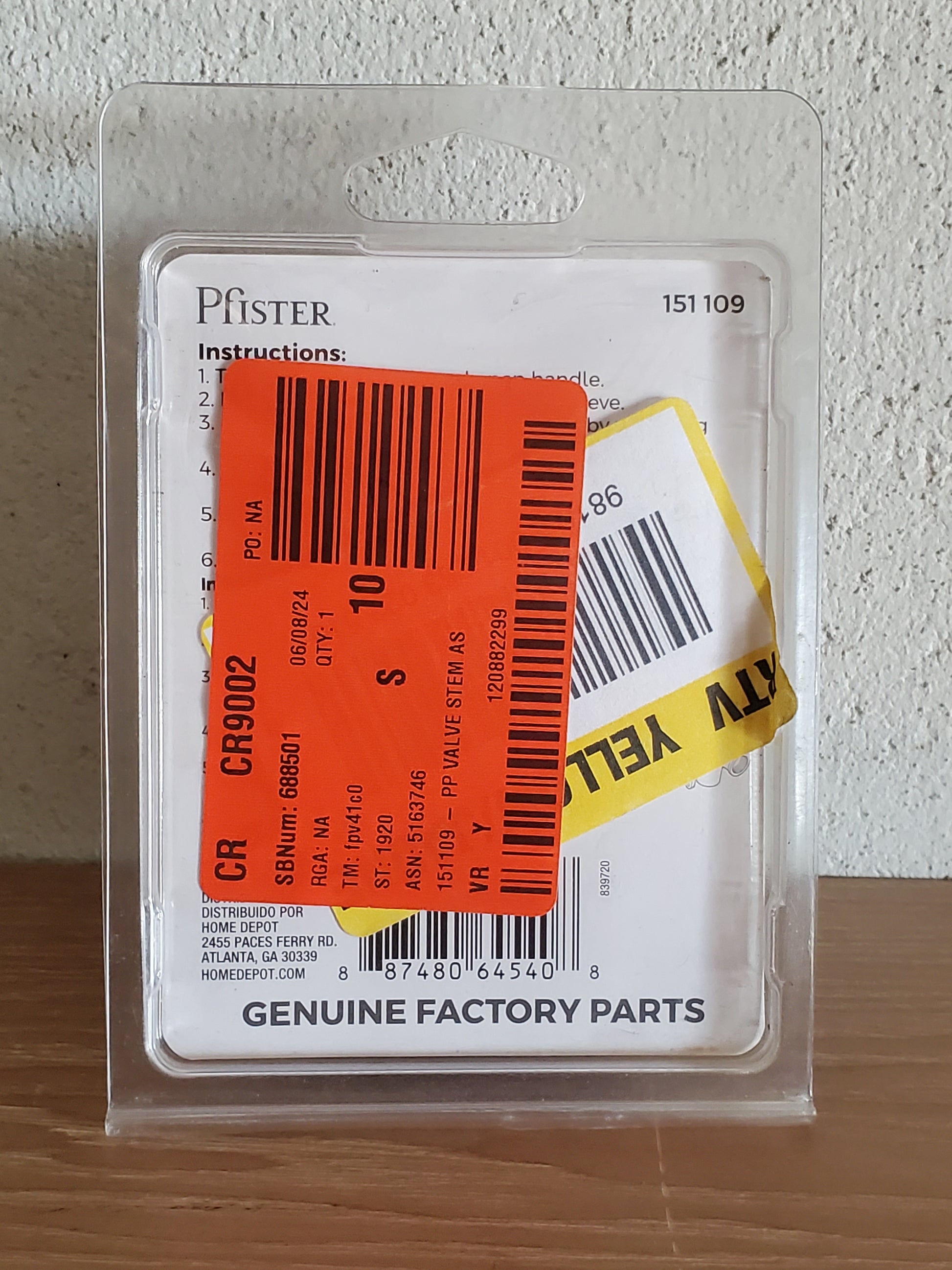 Pfister OEM (original equipment manufacture) 971-250 valve stem assembly. Used to replace worn or damaged assemblies in 08 series Pfister tub/shower faucets. Durable plastic construction for years of reliable use. Color: Black.