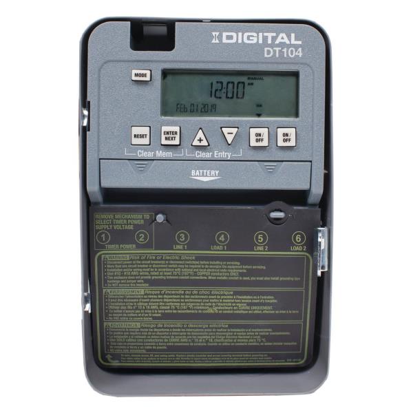 DT Series 2-Circuit 20 Amp 24 Hour Indoor Surface Mount Timer with Battery Backup, Gray