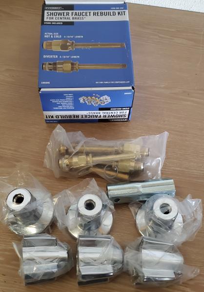 Chrome tub and shower repair kit repairs old and leaky faucetsDirect replacement for Central Brass K-3-CT and K-3-DTKit includes: handles trim stems and seatsAbout This ProductThis is a complete shower valve rebuild kit. All the parts needed to give a fresh new look to your shower. No hassle installation. You do not have to remove the valve inside the wall.Tub and shower rebuild kit to fix your existing shower valveWorks with central brass tub or showersComplete kit to repair and rebuild tub or shower faucetAll the parts needed to rebuild existing valve bodyChrome finishMade from solid brass.