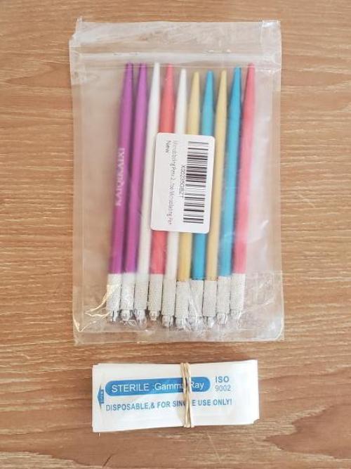 - 1.【Super value packing】 10Pcs Microblading Pens+ 10 round needles. Size: 13cm x 6mm. Weight: 14g. Multicolor random shipment.